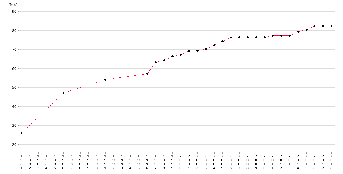 | 數目 | 76 | 76 | 77 | 77 | 77 | 79 | 80 | 82 |
