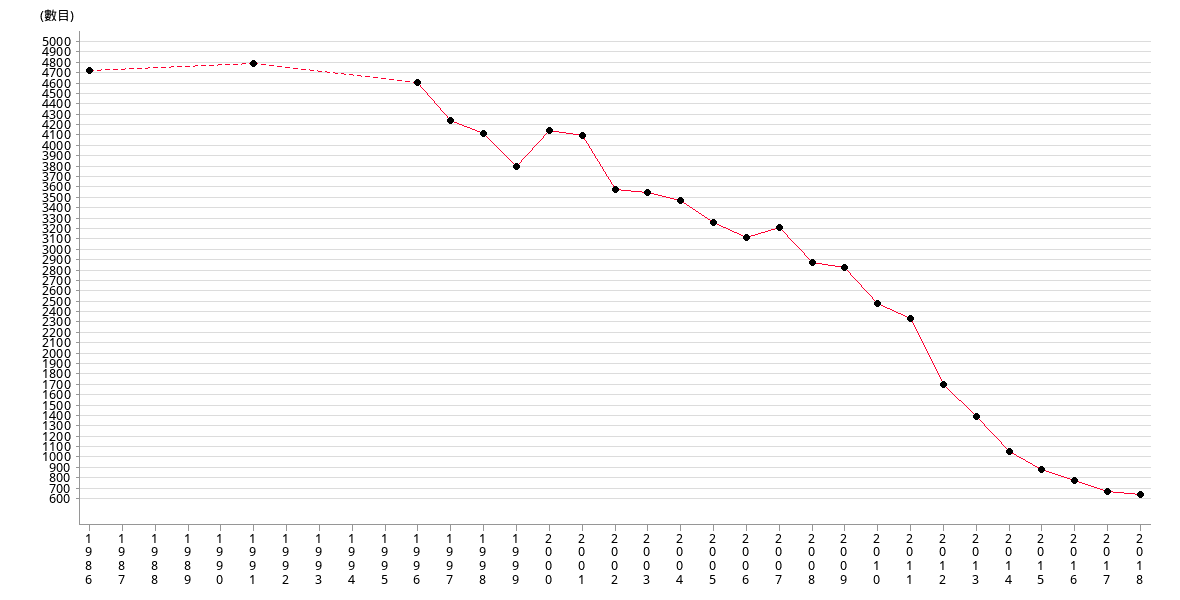 | 數目 | 4879 | 4947 | 4761 | 4380 | 4252 | 3920 | 4278 | 4234 |
