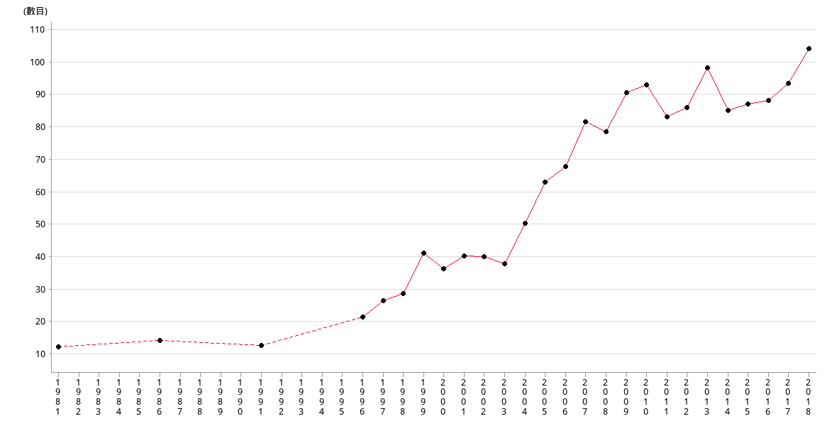 | 數目 | 39.90 | 39.83 | 37.55 | 49.93 | 62.72 | 67.45 | 81.08 | 77.96 |