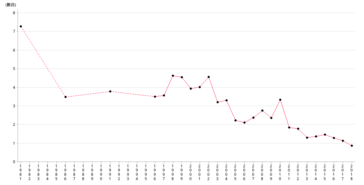 | 數目 | 4.04 | 4.58 | 3.22 | 3.32 | 2.23 | 2.11 | 2.39 | 2.76 |