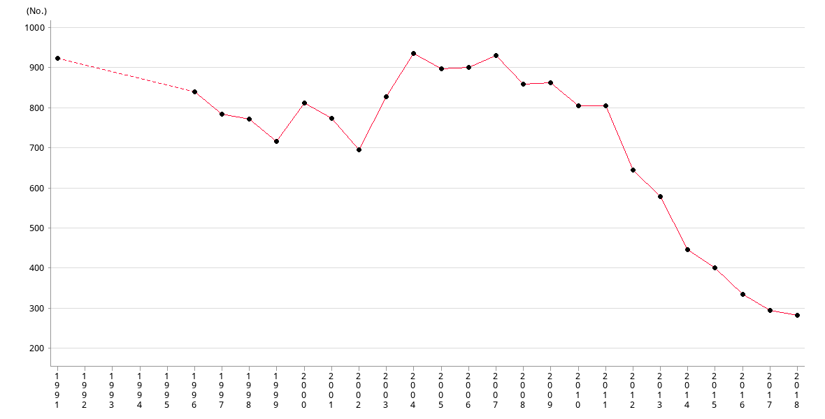 | 數目 | 809 | 647 | 581 | 447 | 402 | 335 | 295 | 283 |