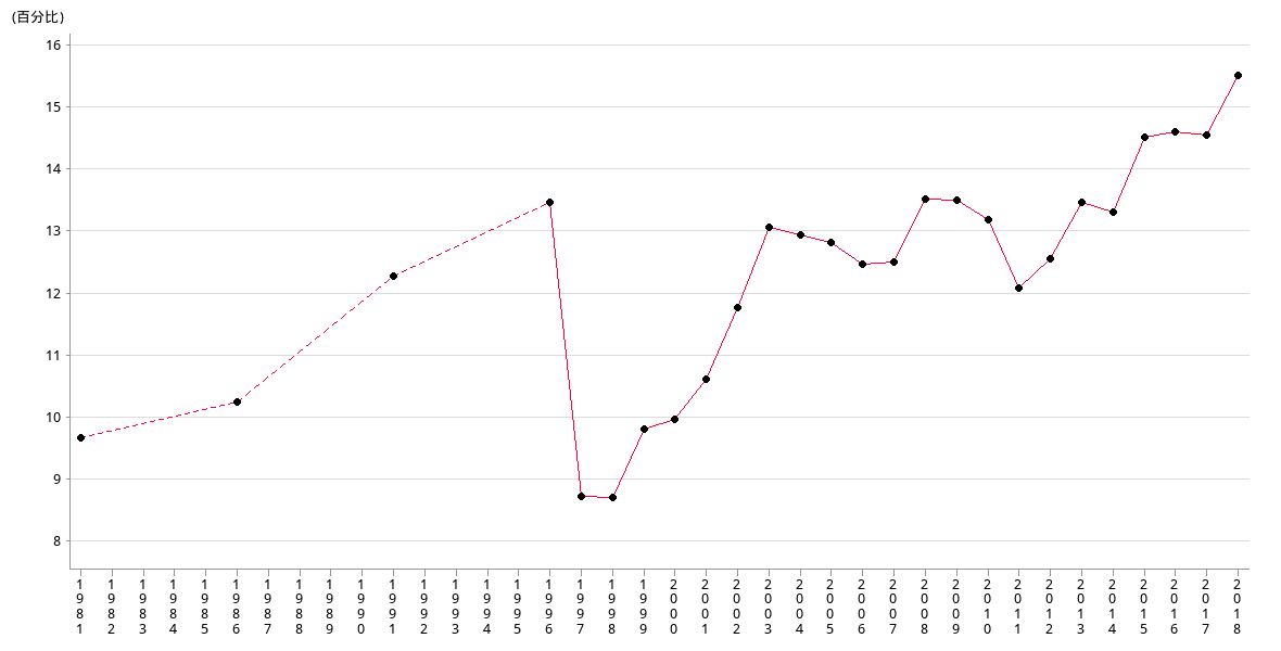 | 百分比 | 10.61 | 11.78 | 13.07 | 12.96 | 12.83 | 12.47 | 12.50 | 13.52 |