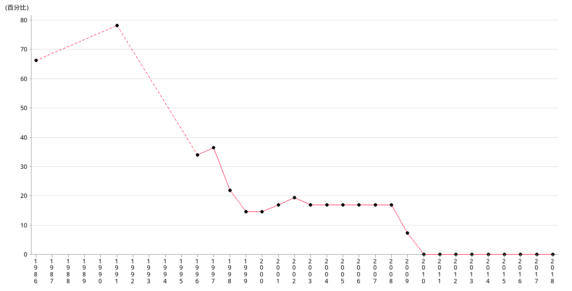 | 年份 | 1986 | 1991 | 1996 | 1997 | 1998 | 1999 | 2000 | 2001 |