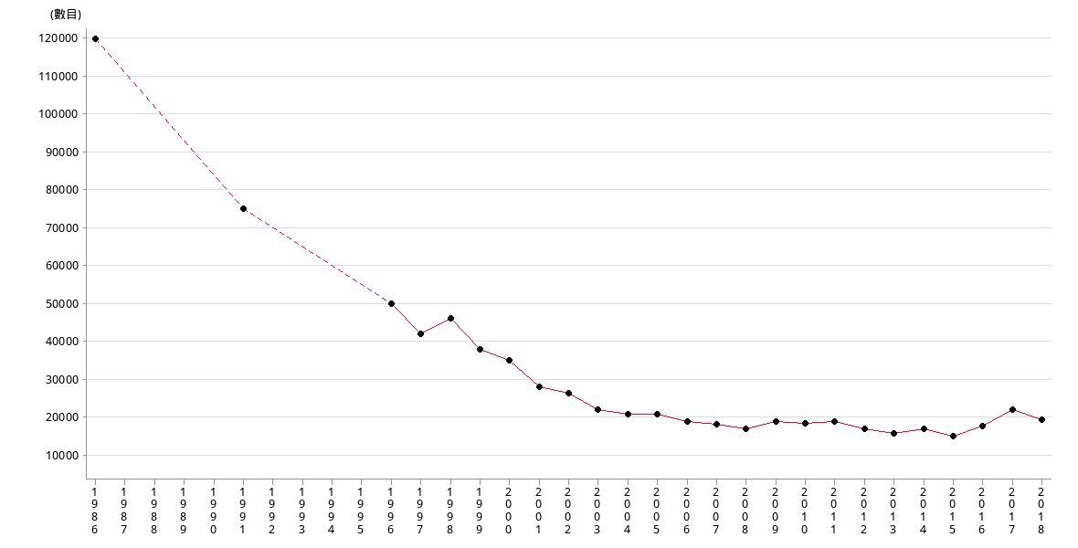| 數目 | 18300 | 18700 | 16900 | 15800 | 16900 | 15000 | 17600 | 21900 |