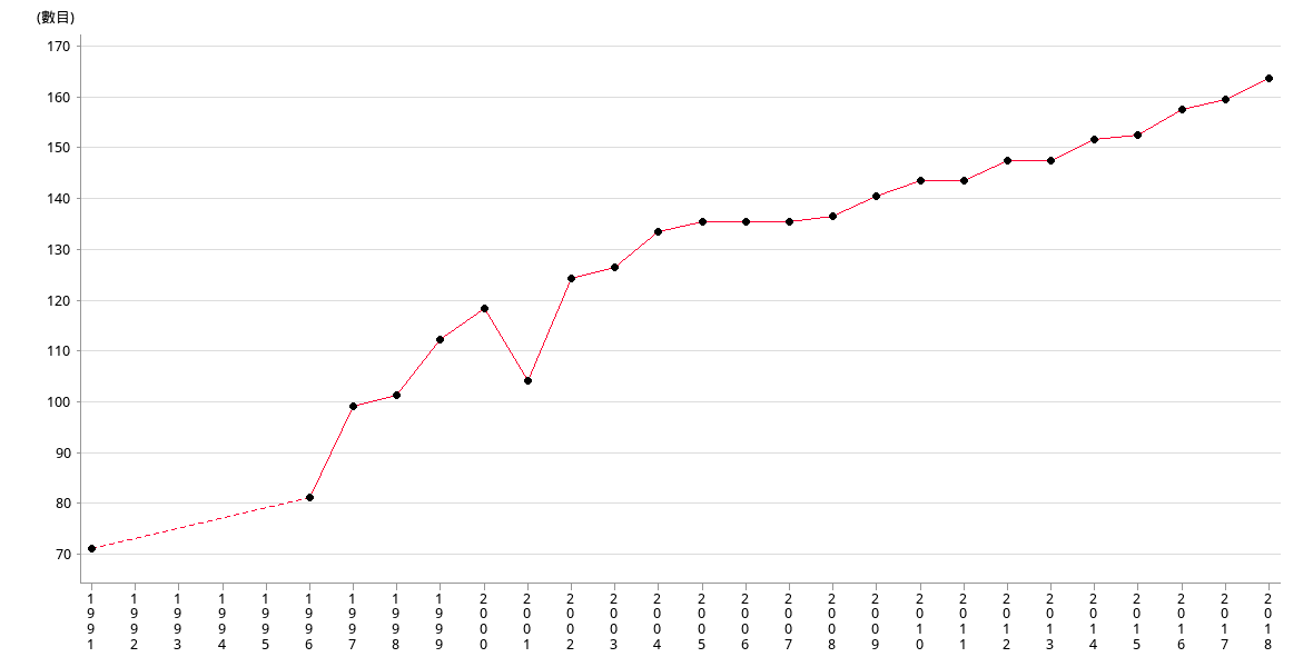 | 數目 | 126 | 133 | 135 | 135 | 135 | 136 | 140 | 143 |