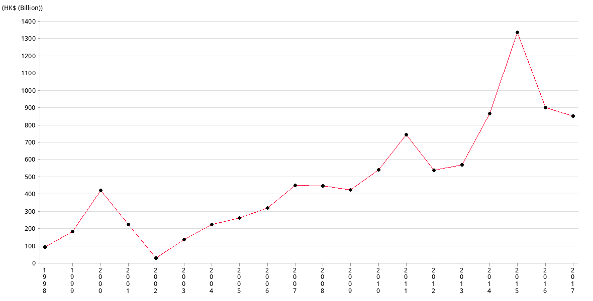 | 港幣 (十億) | 324.78 | 455.63 | 454.09 | 430.50 | 548.04 | 751.79 | 544.30 | 576.20 |