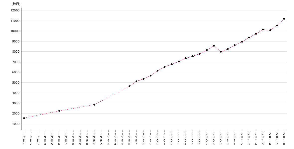 | 數目 | 7912 | 8165 | 8554 | 8848 | 9258 | 9624 | 10029 | 9983 |