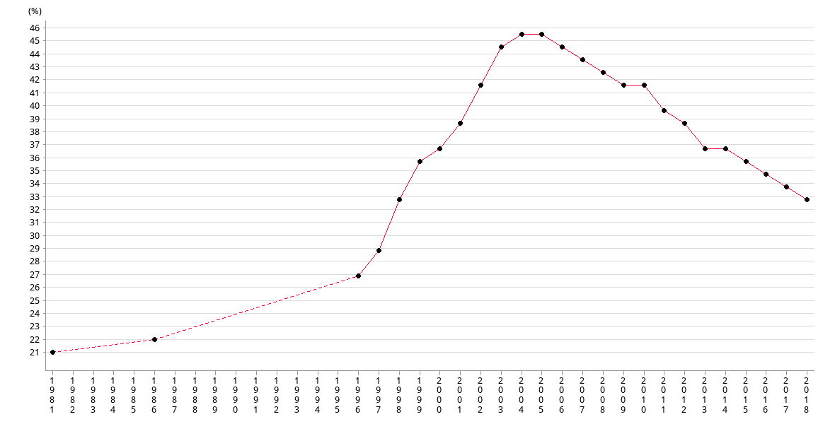 | 百分比 | 42 | 45 | 46 | 46 | 45 | 44 | 43 | 42 |