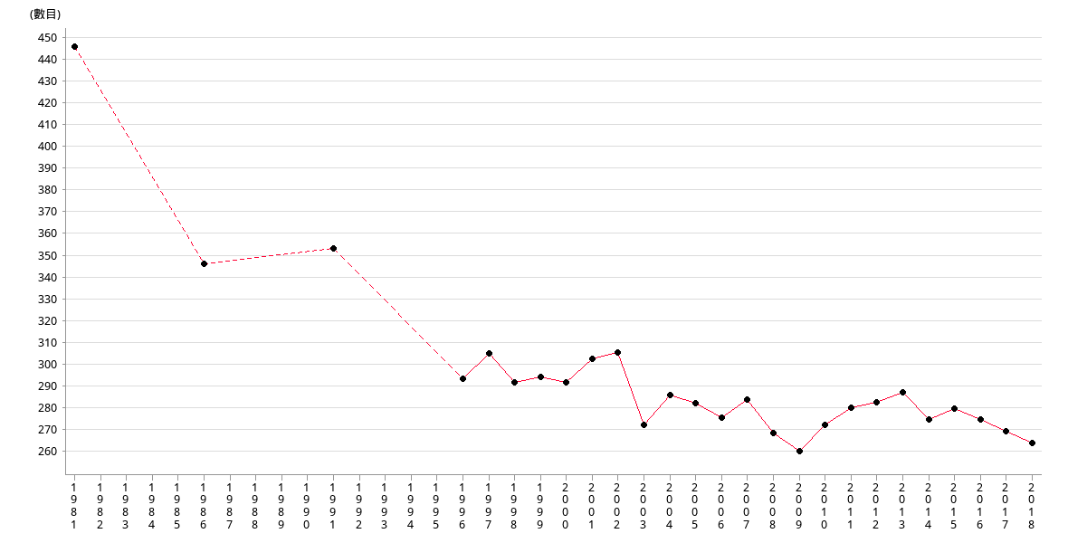 | 數目 | 260.13 | 272.26 | 280.04 | 282.65 | 286.90 | 274.62 | 279.52 | 274.41 |