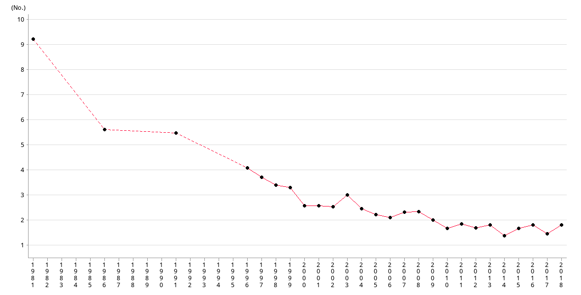 | 年份 | 1981 | 1986 | 1991 | 1996 | 1997 | 1998 | 1999 | 2000 |
