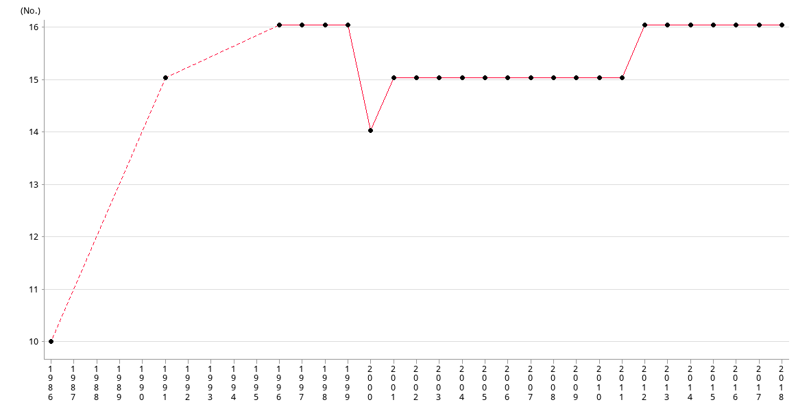 | No. | 10 | 15 | 16 | 16 | 16 | 16 | 14 | 15 |