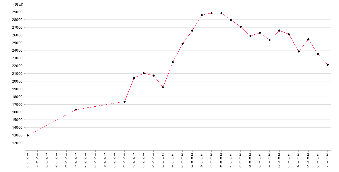 All figures are collected from Leisure and Cultural Services Departmen since 1986t.
