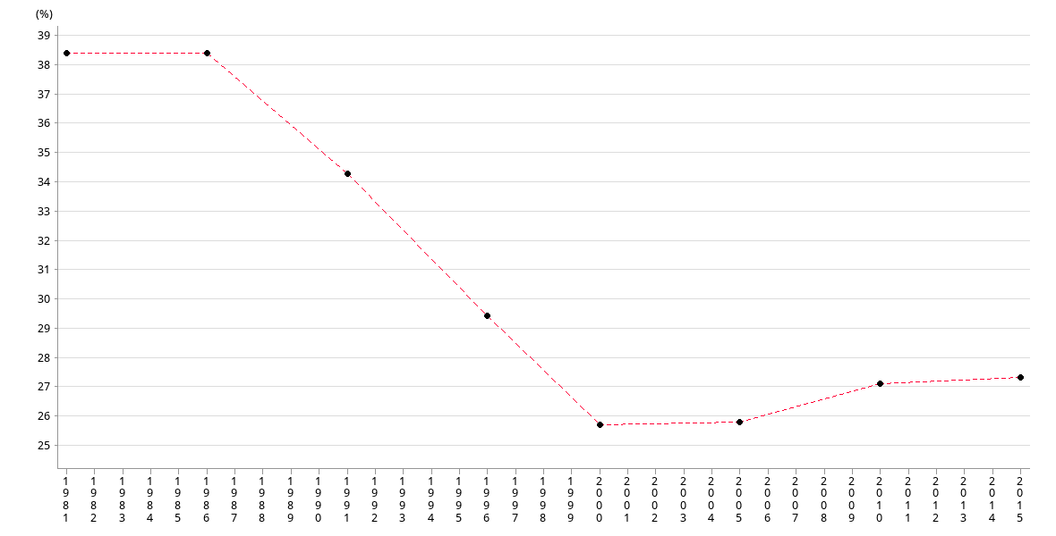 | Year | 1981 | 1986 | 1991 | 1996 | 2000 | 2005 | 2010 | 2015 |