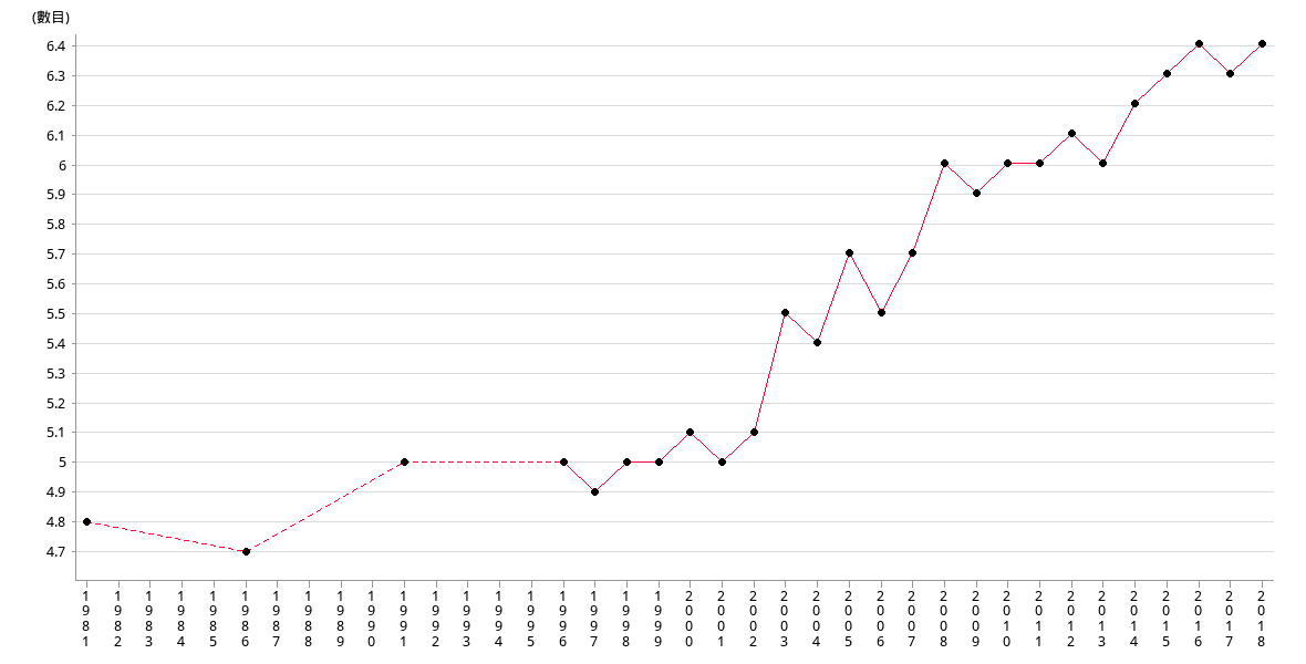 | Year | 1981 | 1986 | 1991 | 1996 | 1997 | 1998 | 1999 | 2000 |