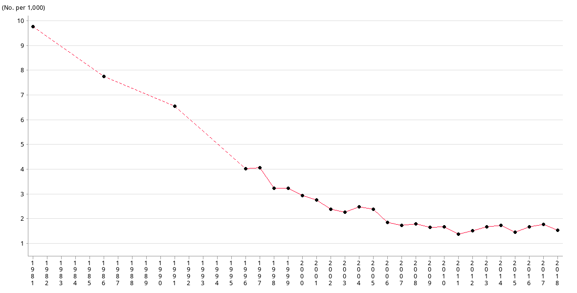 | No. per 1,000 | 2.75 | 2.37 | 2.26 | 2.47 | 2.38 | 1.84 | 1.72 | 1.78 |