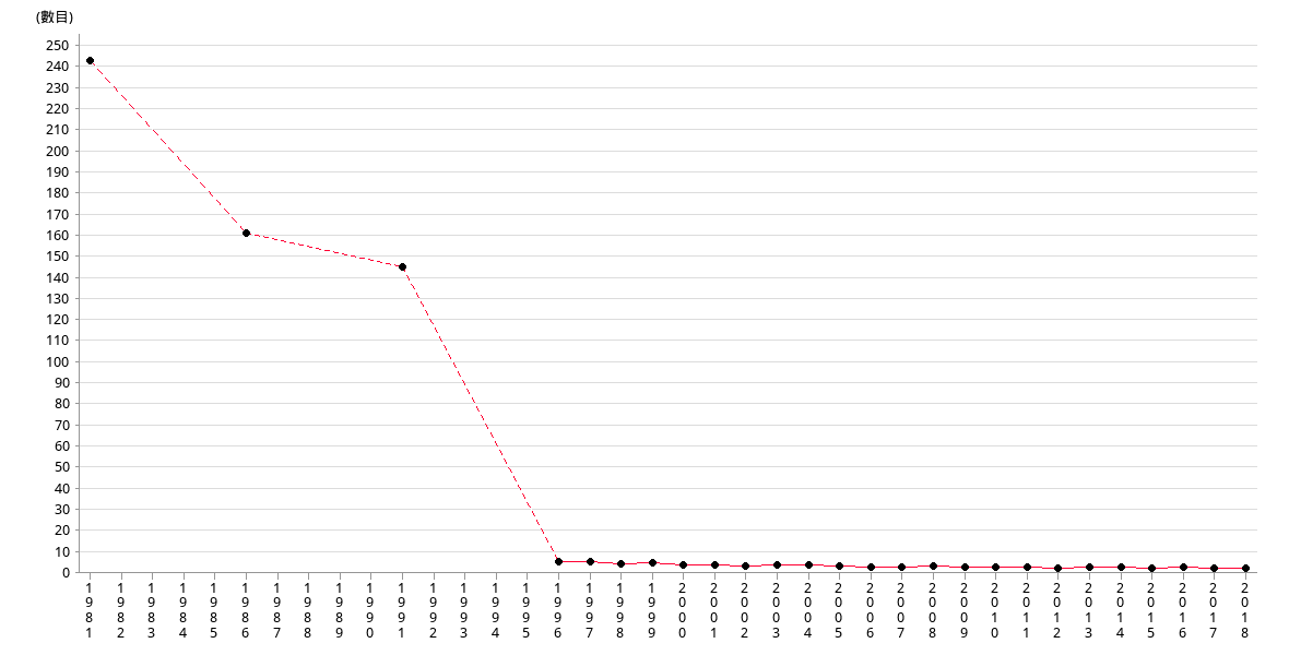 | Year | 1981 | 1986 | 1991 | 1996 | 1997 | 1998 | 1999 | 2000 |