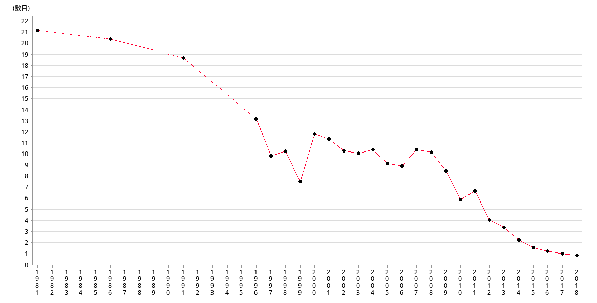 | Year | 1981 | 1986 | 1991 | 1996 | 1997 | 1998 | 1999 | 2000 |