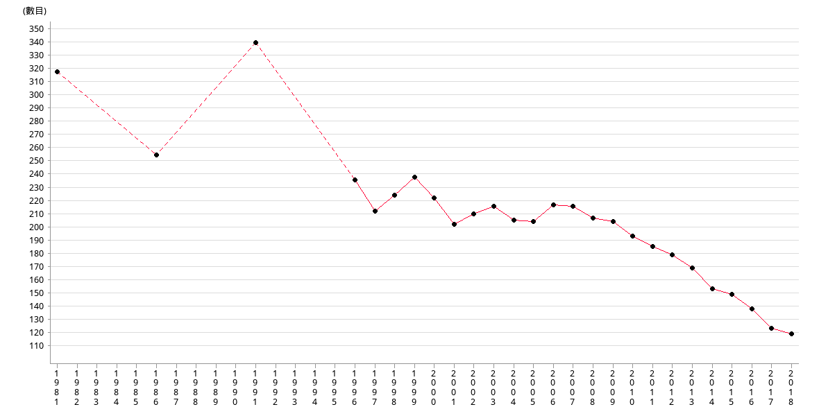 Figures for 1983, 1987 and 1992 are collected from Royal Hong Kong Police Force.