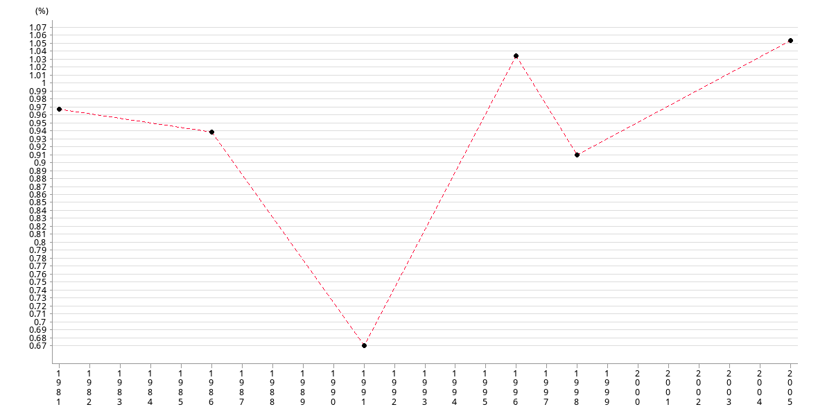 | % | 0.98 | 0.95 | 0.67 | 1.05 | 0.92 | 1.07 |