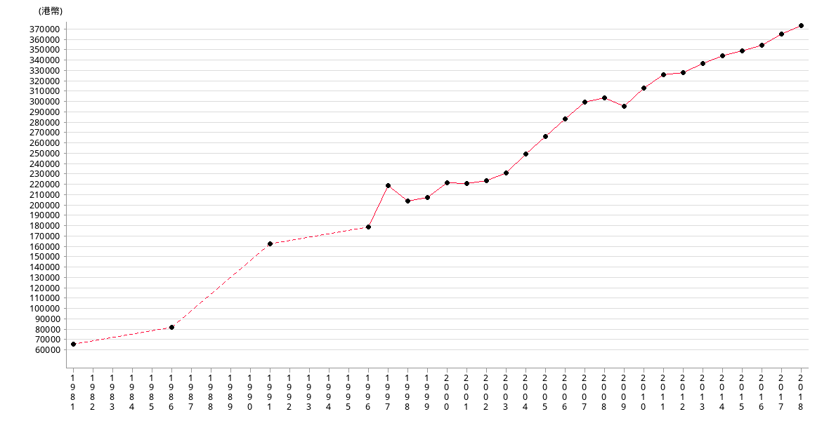 | HK$ | 218076 | 220709 | 227904 | 245807 | 262817 | 279499 | 295021 | 299502 |