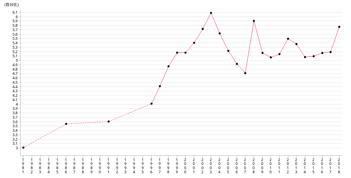 | % | 5.36 | 5.68 | 6.03 | 5.57 | 5.18 | 4.89 | 4.68 | 5.86 |