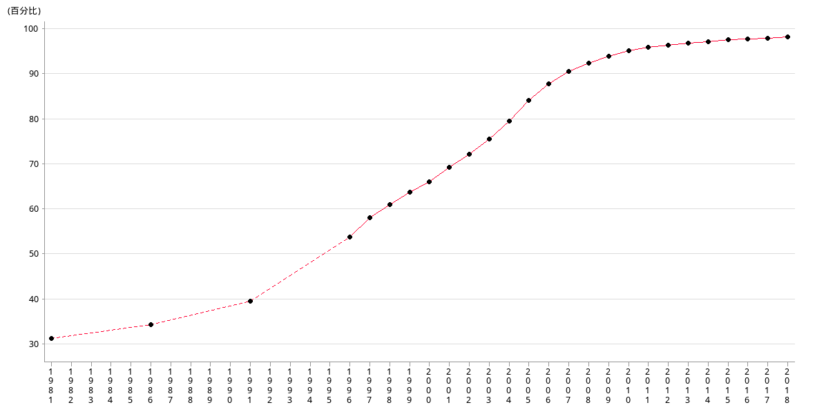| % | 69.39 | 72.32 | 75.69 | 79.65 | 84.32 | 87.99 | 90.74 | 92.56 |