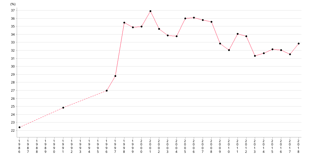 | % | 34.50 | 33.70 | 33.60 | 35.80 | 35.90 | 35.60 | 35.40 | 32.70 |