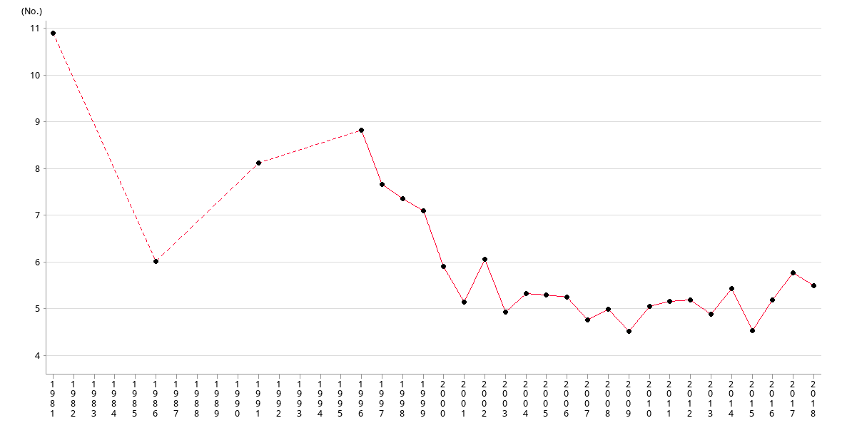 All figures are collected from Labour Department since 1986. Figures of non-fatal occupational injuries of construction workers per 100,000 construction manual workers engaged are provided by the Labour Department for the years of 1986 and after.