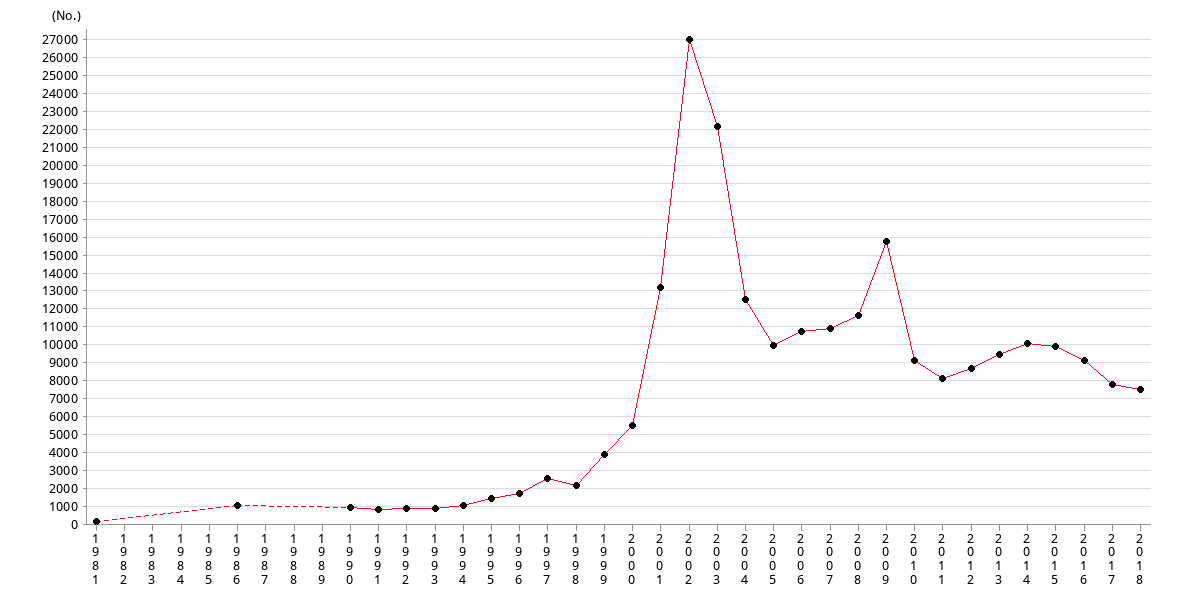 | No. | 12502 | 9955 | 10708 | 10906 | 11634 | 15746 | 9089 | 8102 |