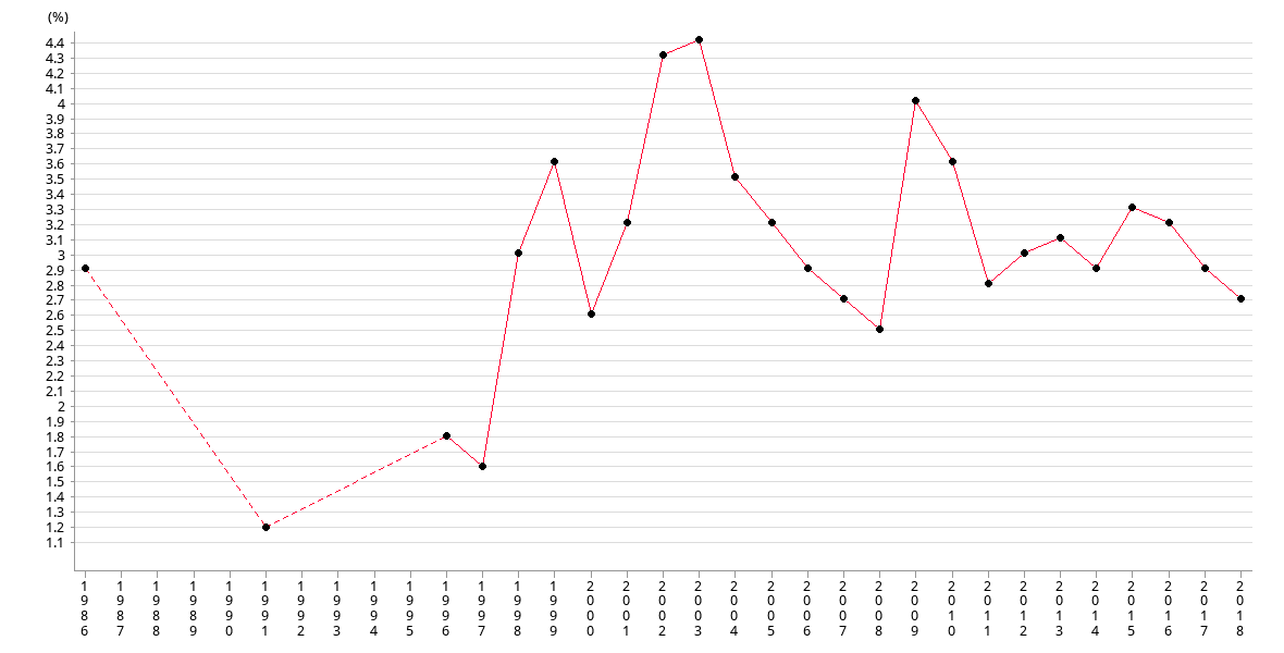 | % | 4.30 | 4.40 | 3.50 | 3.20 | 2.90 | 2.70 | 2.50 | 4 |