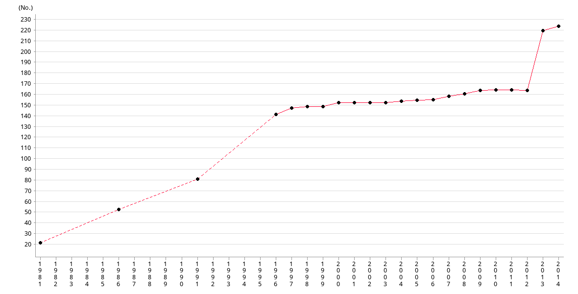 | Year | 1981 | 1986 | 1991 | 1996 | 1997 | 1998 | 1999 | 2000 |