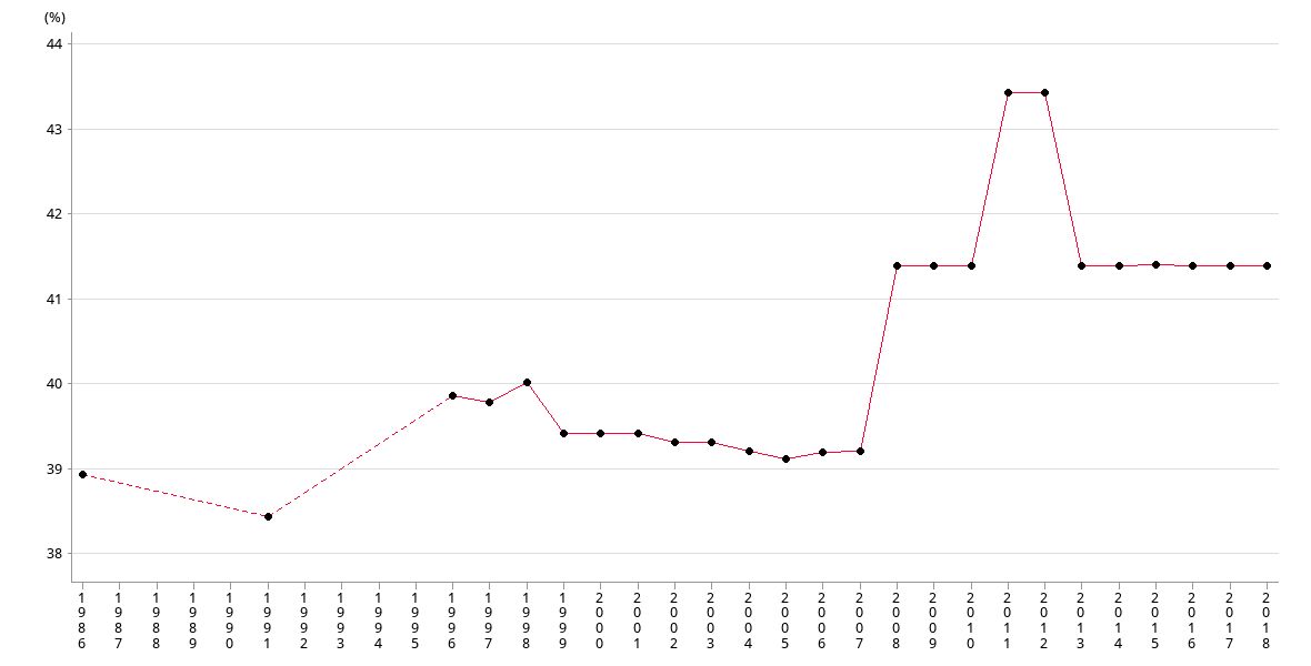 | % | 38.92 | 38.43 | 39.84 | 39.77 | 40 | 39.40 | 39.40 | 39.40 |