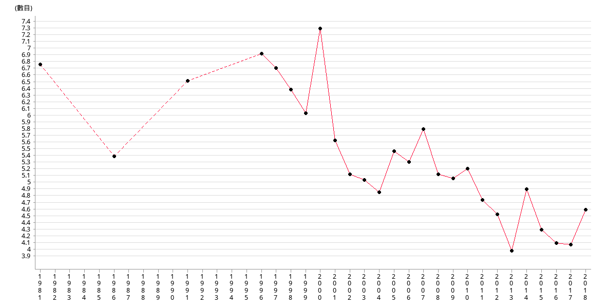 | Year | 1981 | 1986 | 1991 | 1996 | 1997 | 1998 | 1999 | 2000 |