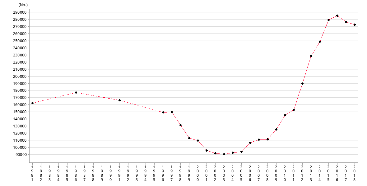 | No. | 162000 | 177000 | 166083 | 149340 | 149672 | 131160 | 113203 | 109633 |