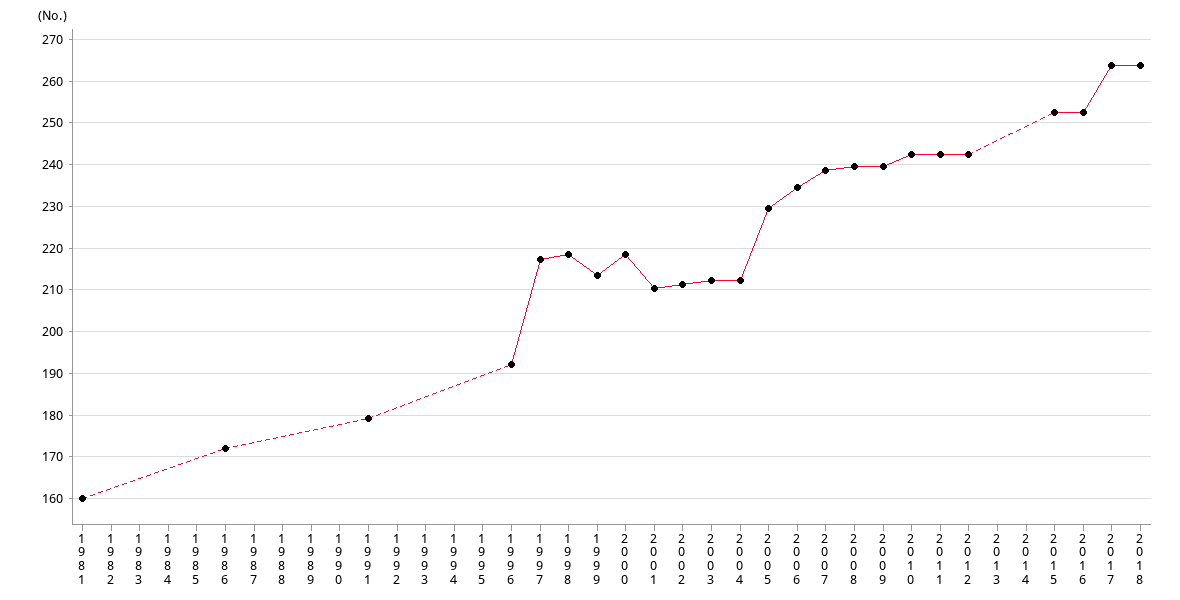 | No. | 160 | 172 | 179 | 192 | 217 | 218 | 213 | 218 |