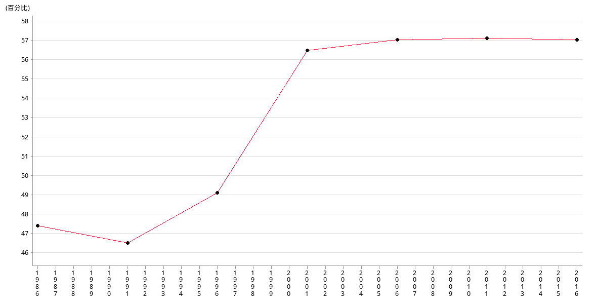 | % | 47.40 | 46.50 | 49.10 | 56.51 | 57.05 | 57.13 | 57.05 |