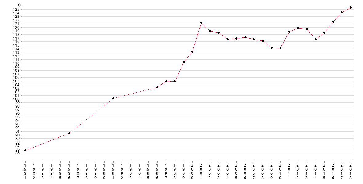 | 85.70 | 90.30 | 99.80 | 102.80 | 104.50 | 104.40 | 109.70 | 112.50 | |