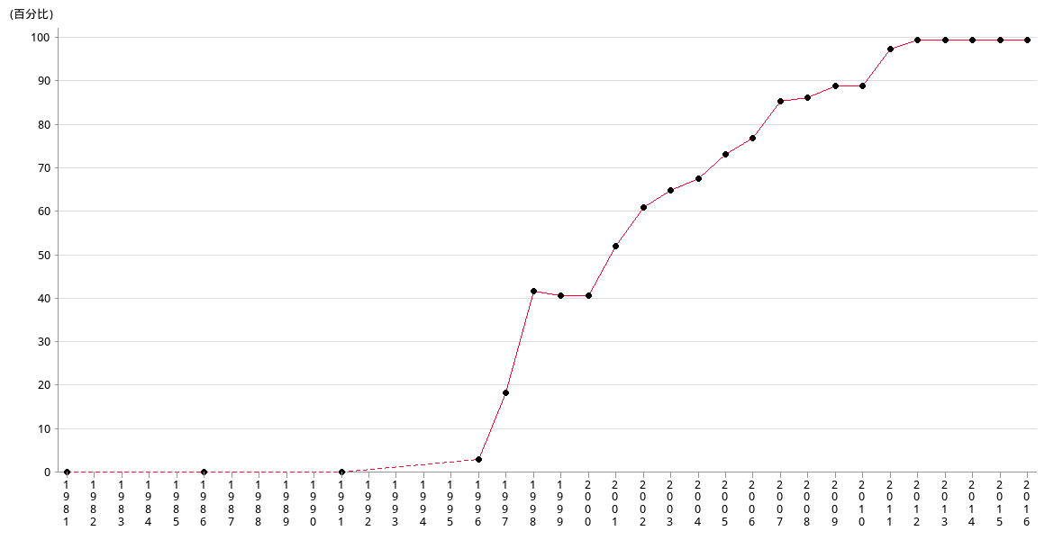 | Year | 1981 | 1986 | 1991 | 1996 | 1997 | 1998 | 1999 | 2000 |