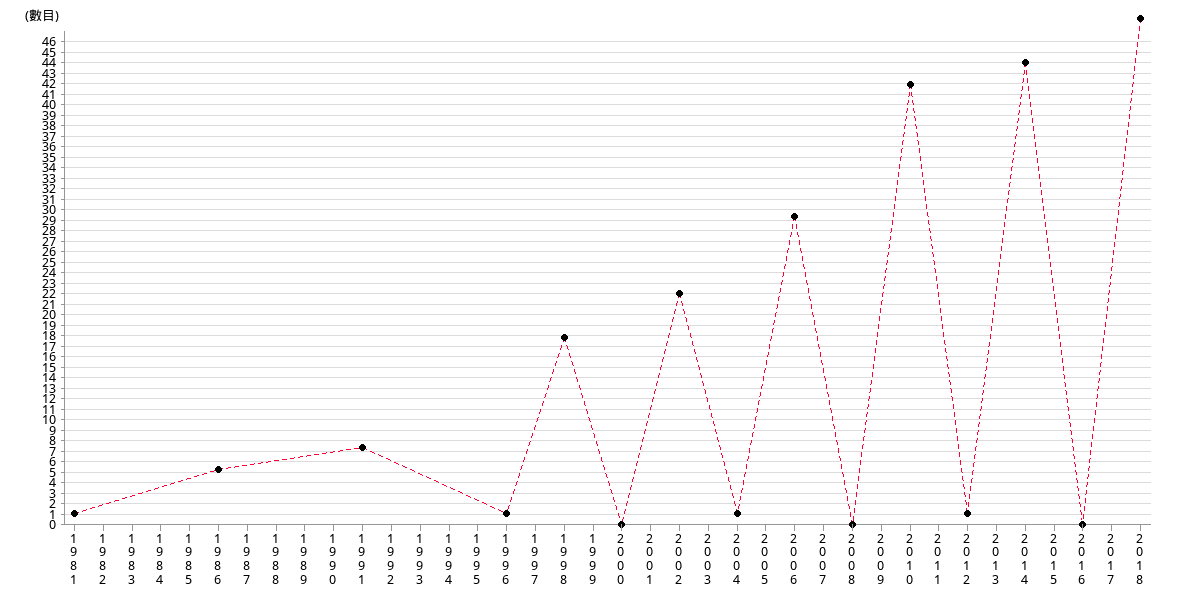 | Year | 1981 | 1986 | 1991 | 1996 | 1998 | 2000 | 2002 | 2004 |