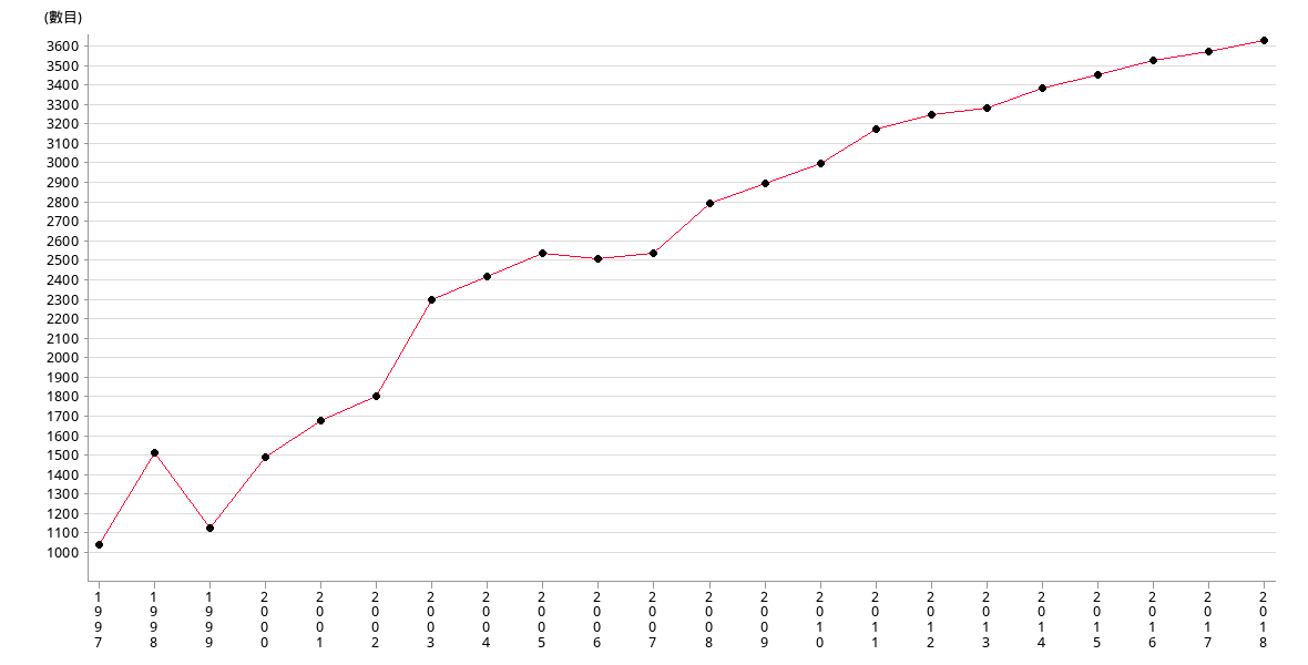| Year | 1997 | 1998 | 1999 | 2000 | 2001 | 2002 | 2003 | 2004 |