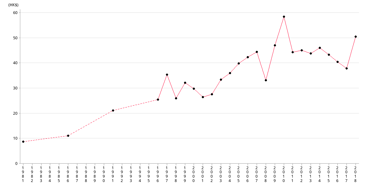 | HK$ | 8.67 | 10.95 | 20.94 | 25.32 | 35.21 | 25.80 | 31.96 | 29.66 |