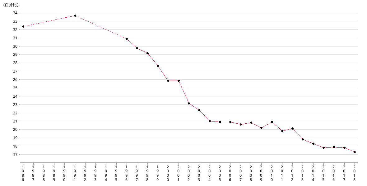 | % | 20.90 | 19.80 | 20.10 | 18.80 | 18.30 | 17.80 | 17.90 | 17.80 |