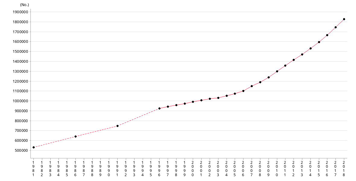 | 數目 | 531600 | 639700 | 745500 | 922400 | 940800 | 954700 | 969400 | 986600 |