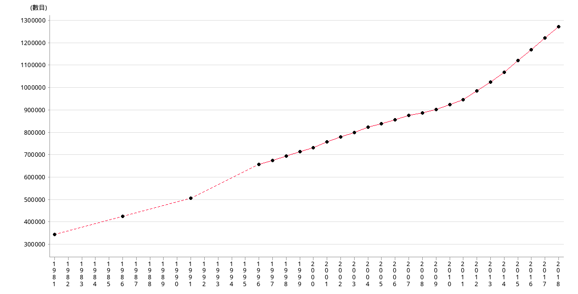 | 數目 | 898600 | 918500 | 941400 | 979900 | 1019900 | 1063800 | 1114600 | 1163200 |