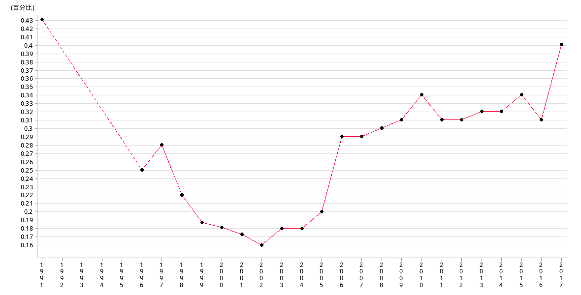 | 百分比 | 0.18 | 0.18 | 0.20 | 0.29 | 0.29 | 0.30 | 0.31 | 0.34 |