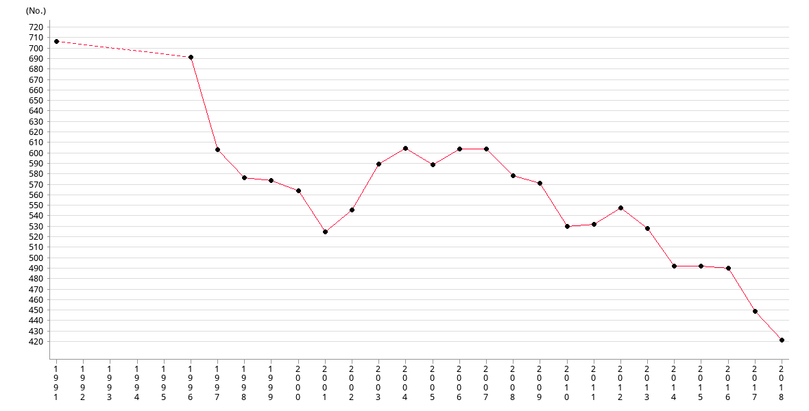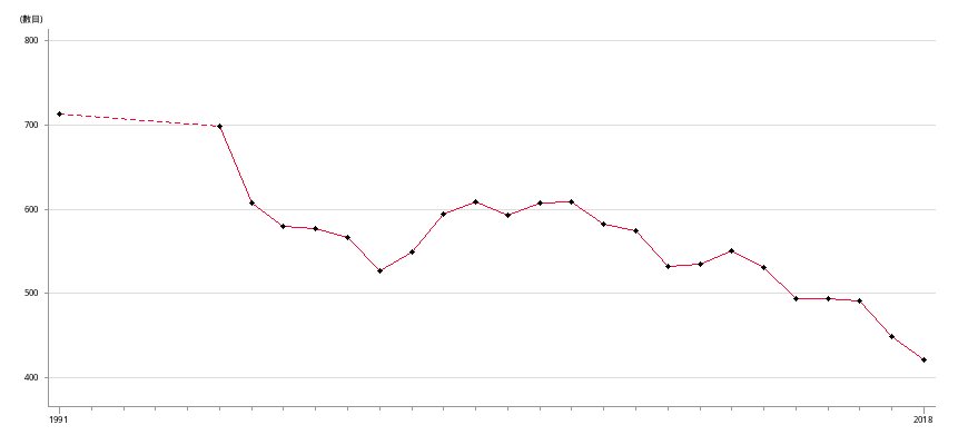 | 數目 | 534 | 550 | 530 | 493 | 493 | 491 | 449 | 421 |