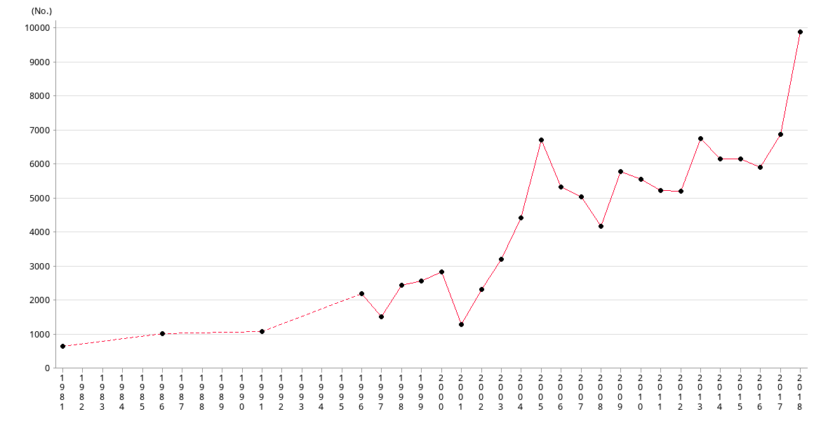 All figures are collected from Intellectual Property Department since 1999.