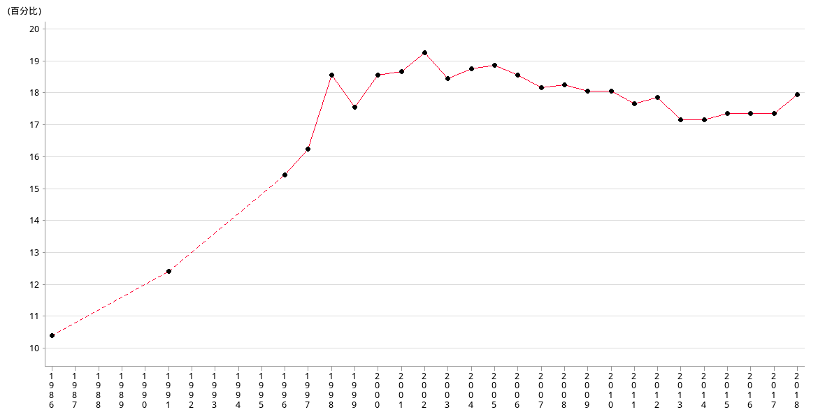 | 百分比 | 19.20 | 18.40 | 18.70 | 18.80 | 18.50 | 18.10 | 18.20 | 18 |