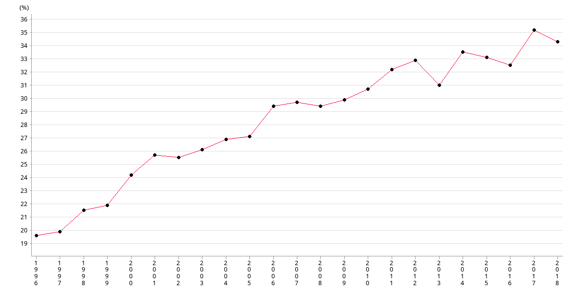 | 百分比 | 26.90 | 27.10 | 29.40 | 29.70 | 29.40 | 29.90 | 30.70 | 32.20 |
