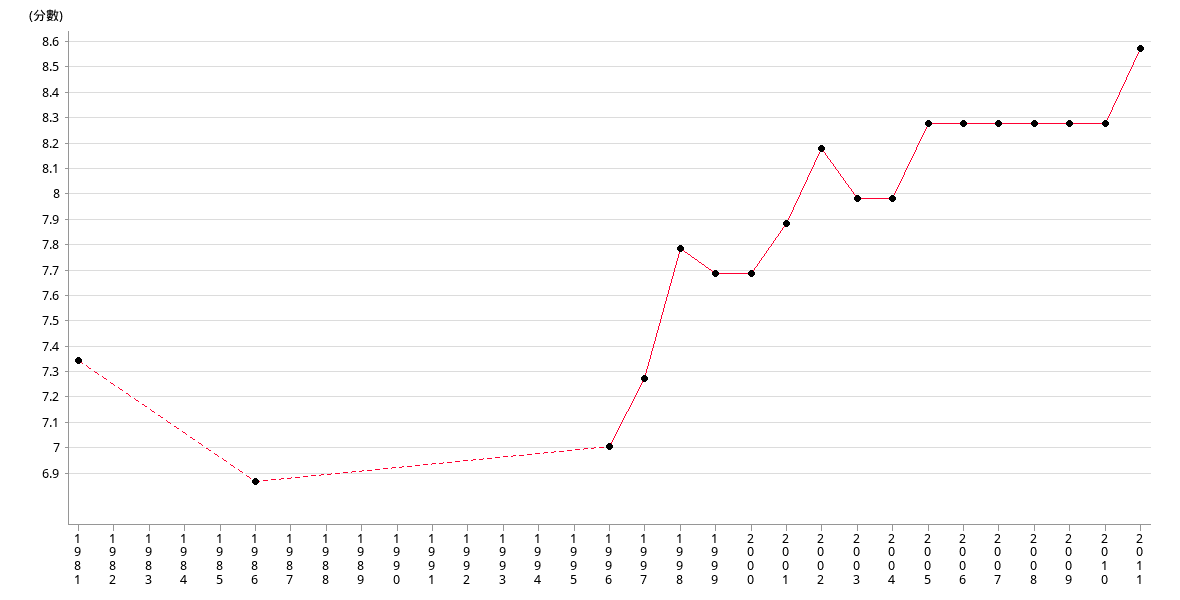 | Score | 7.35 | 6.87 | 7.01 | 7.28 | 7.80 | 7.70 | 7.70 | 7.90 |